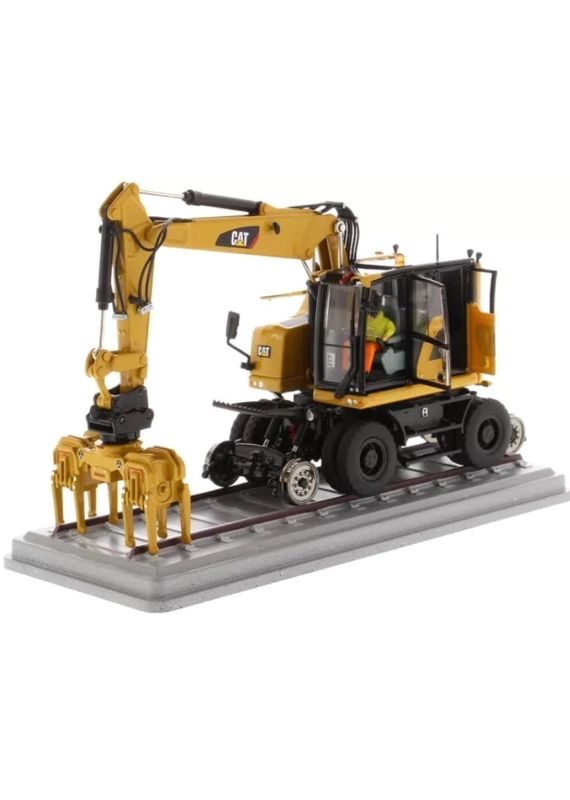 DM1:50 CAT M323F多機能鉄道車輪掘削機 (モデル85662) は,カターピラー社の道路および鉄道掘削機のユニークな二重役割設計を捉える高度に専門化された鋳造レプリカです.耐久性のある合金で作られ リアルな車輪,回転型キャビ,完全関節型ブームとスティックそして交換可能な付属品は全て CAT イエローで完成し,正確な標識と安全貼り付けが付いています.